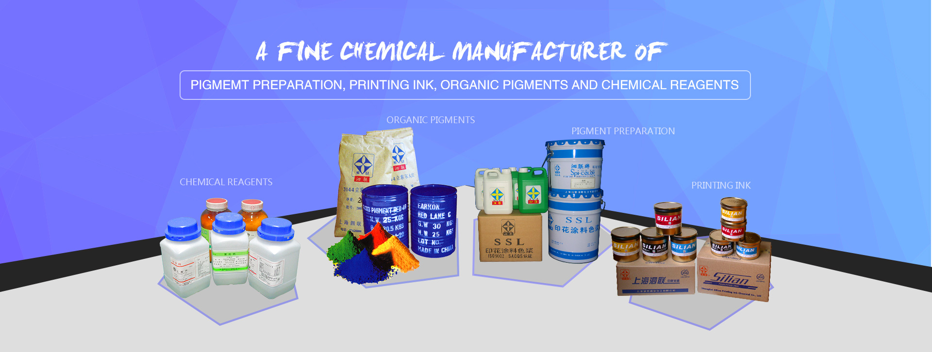A fine chemical manufacturer of Pigment Preparation , Pinting Ink , Organic Pigments and Chemical Reagents